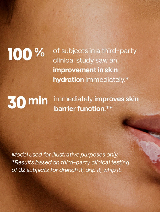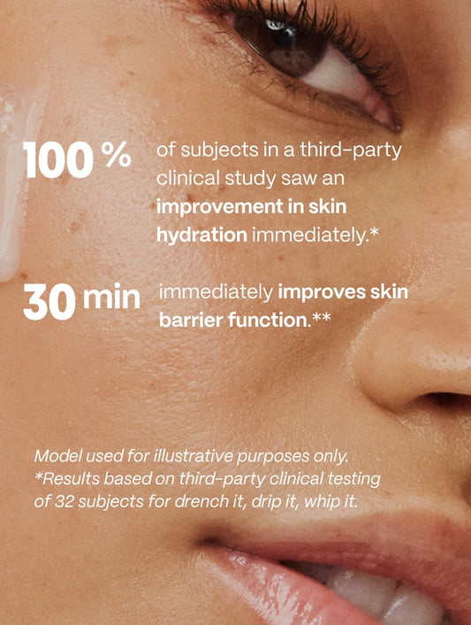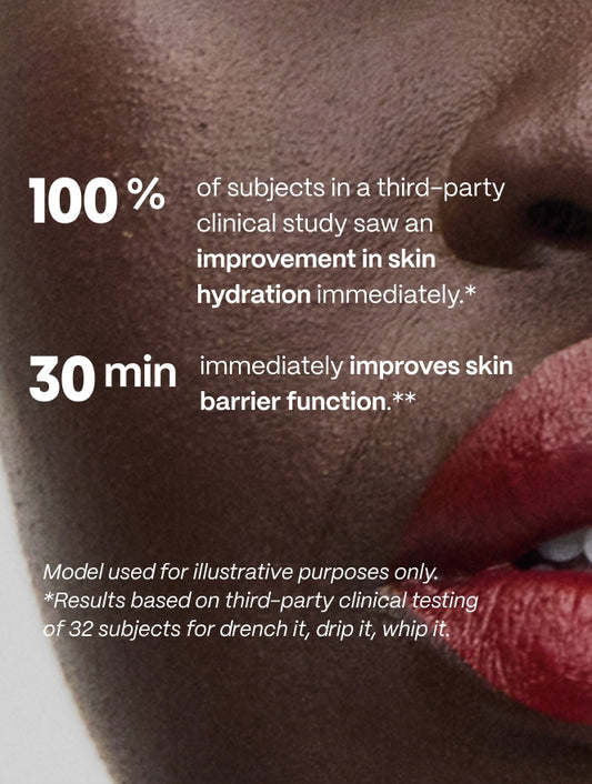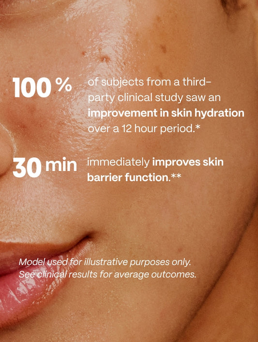 **Provides temporary repair to skin’s moisture barrier function in 30 minutes based on third-party instrumental transepidermal water loss test of 32 subjects.